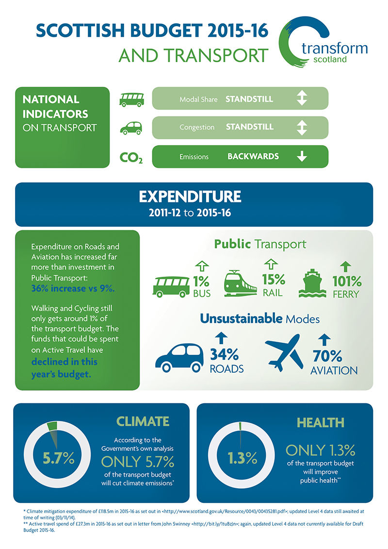 Published 04 February 2015 by Colin HowdenTransform Scotland has called for the Scottish Budget to make greater provision for active travel and cutting climate emissions from transport. The demand comes as the Scottish Parliament holds its final debate on the draft Scottish Budget for 2015-16.