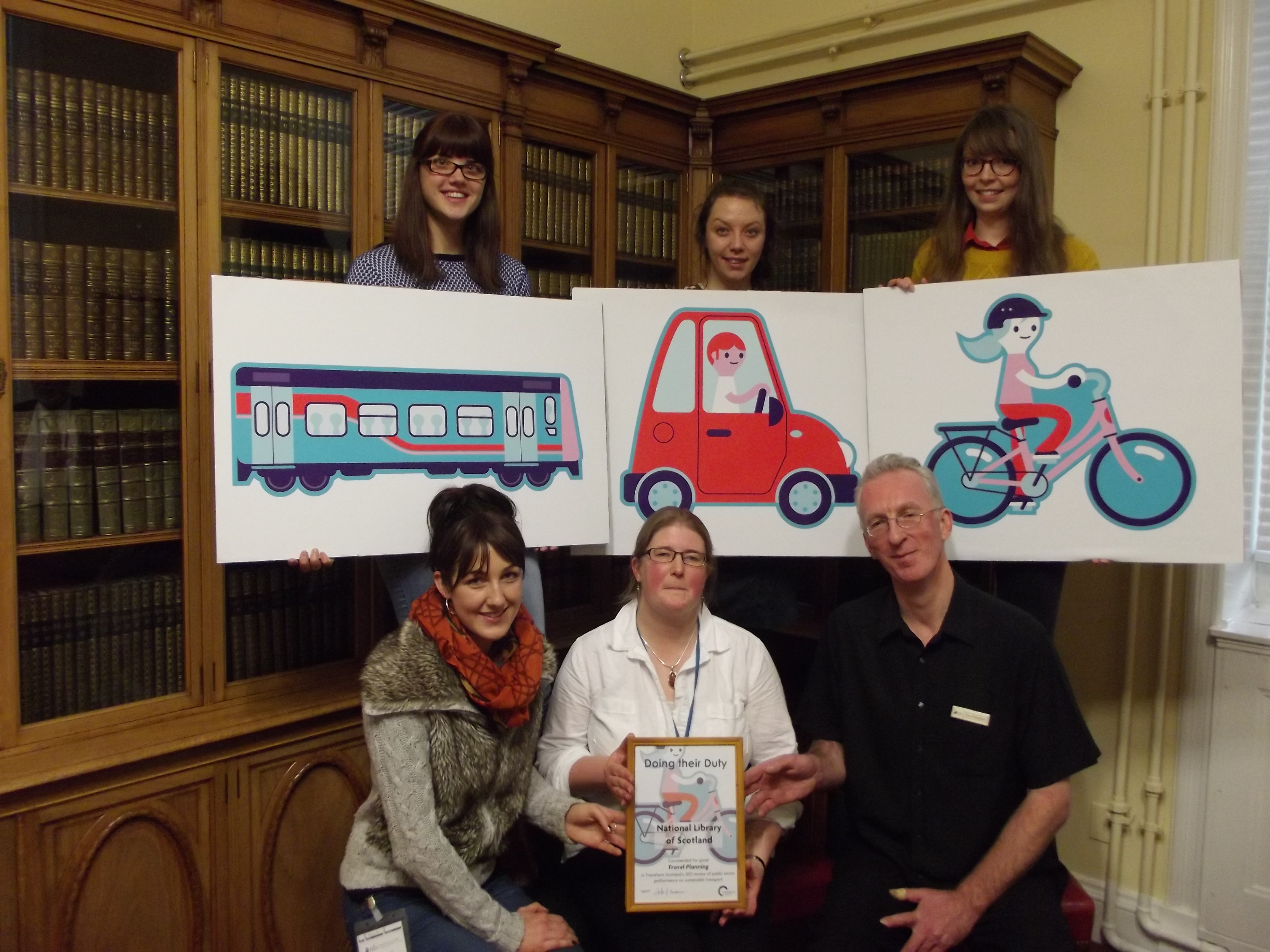 Report author Aoife Parker-Hedderman presenting award for Travel Planning to the National Library for Scotland.